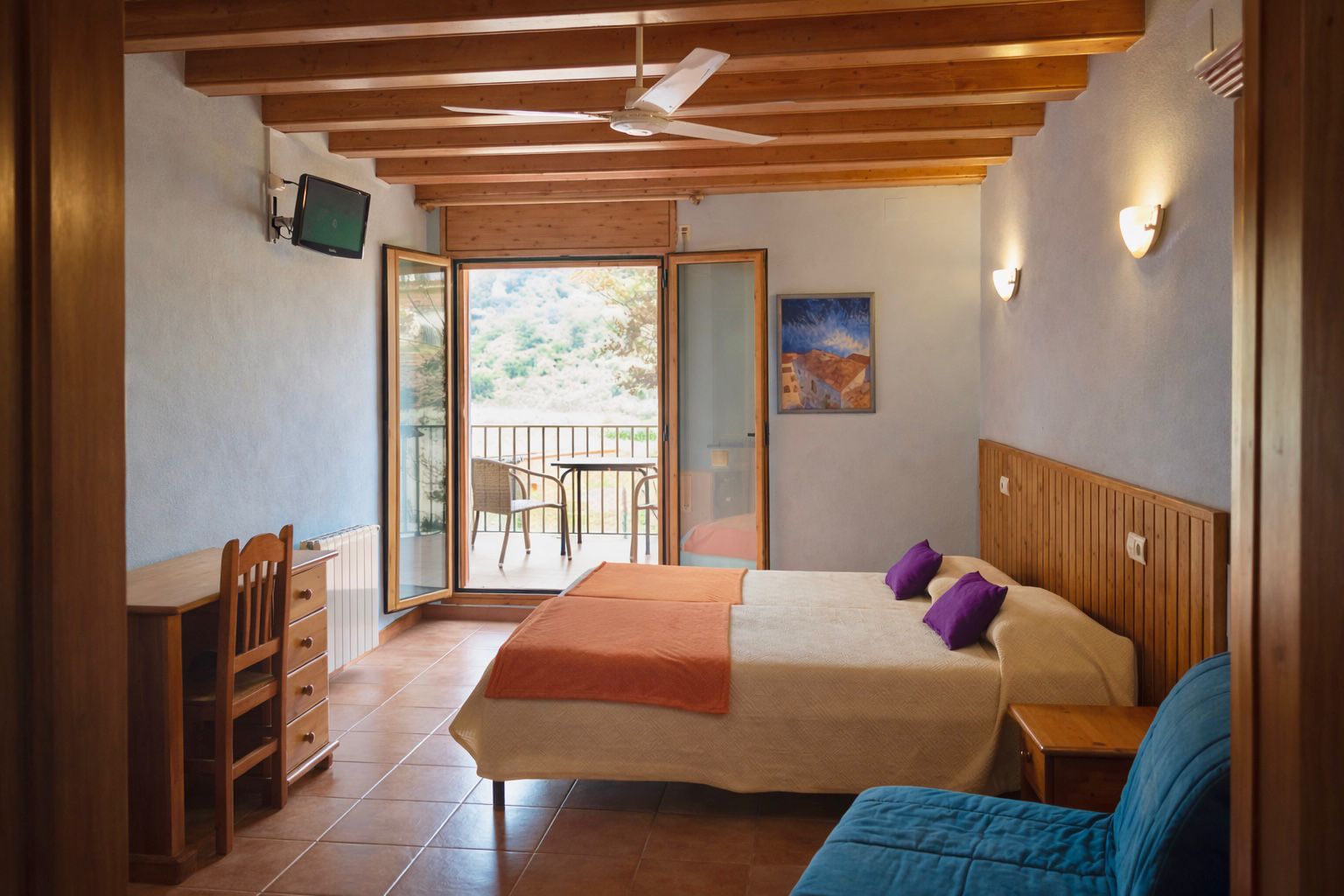 La nostra habitació més romàntica amb llit doble. Un espai càlid i tradicional ideal per a parelles. Capacitat màxima: 3 persones.